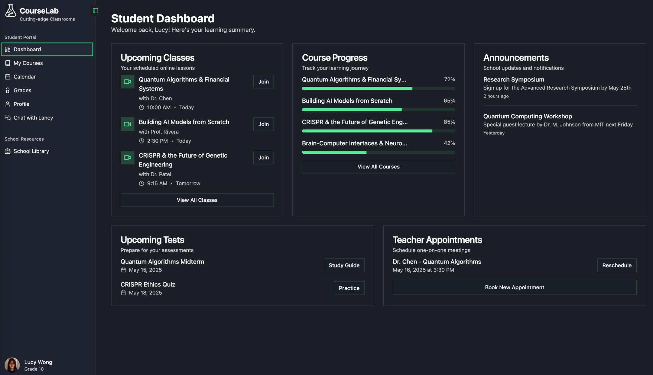 CourseLab partners with your school to deliver rigorous, asynchronous courses on topics like quantum computing, AI, and CRISPR — all under your school’s accreditation.